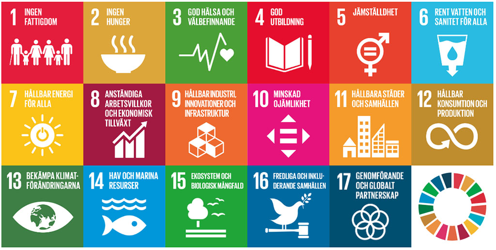 Vi utgår från FNs hållbarhetsmål och säkerställer att vi integrerar hållbarhet i vår affärsstrategi (miljömässiga, sociala och ekonomiska aspekter) eftersom vi är övertygade om att det kommer ge mer nöjda kunder och bättre avkastning för våra ägare.